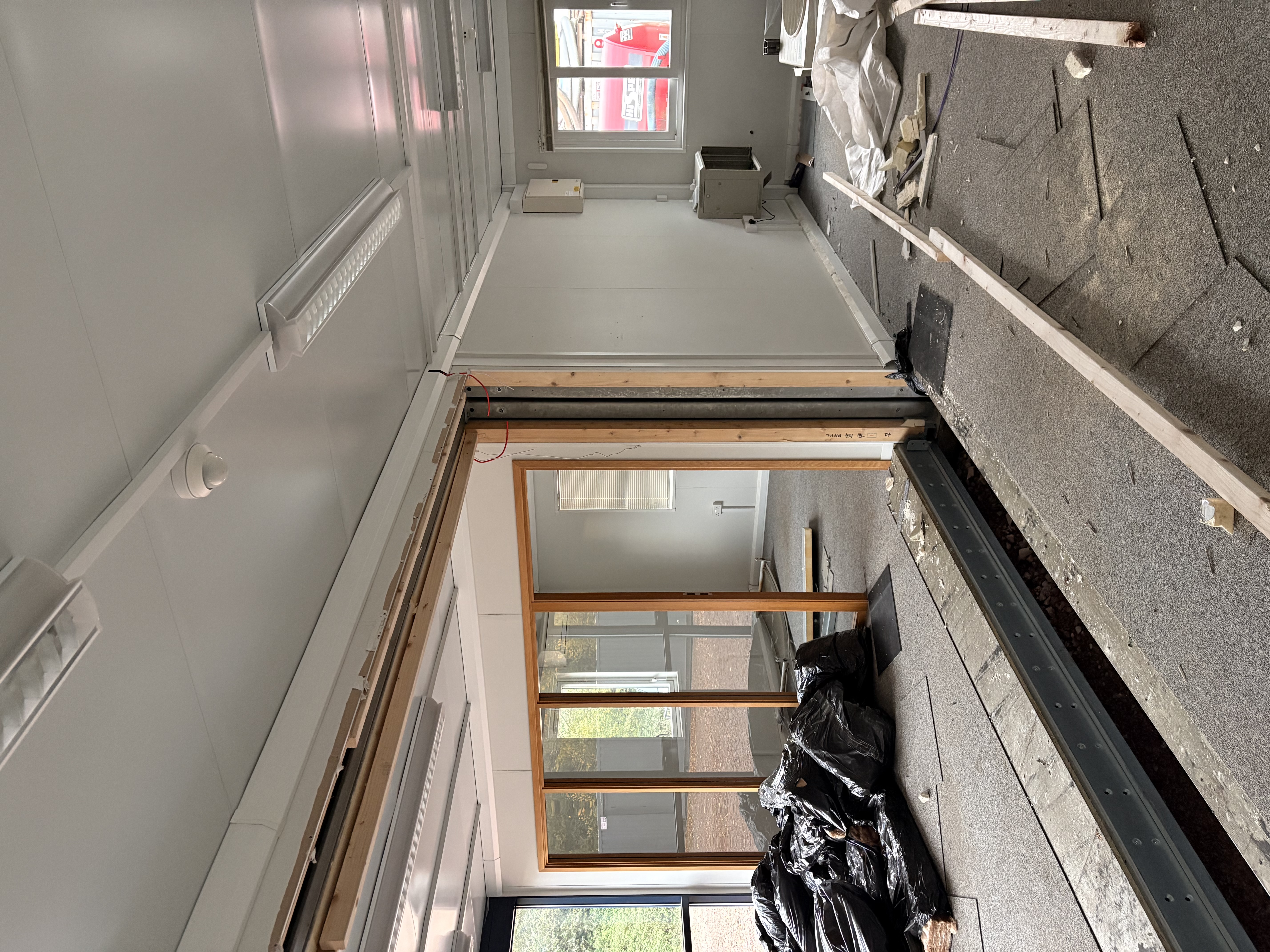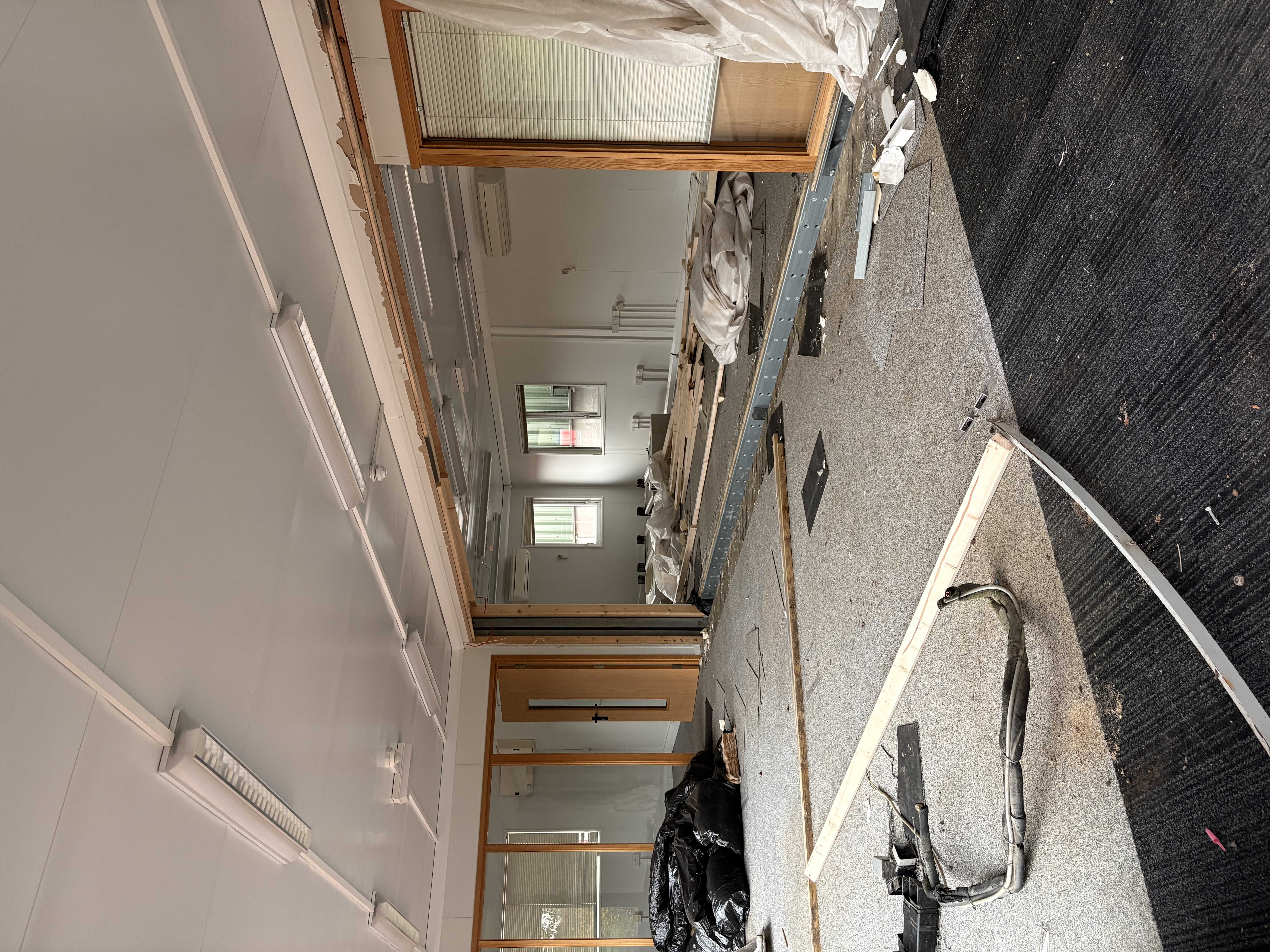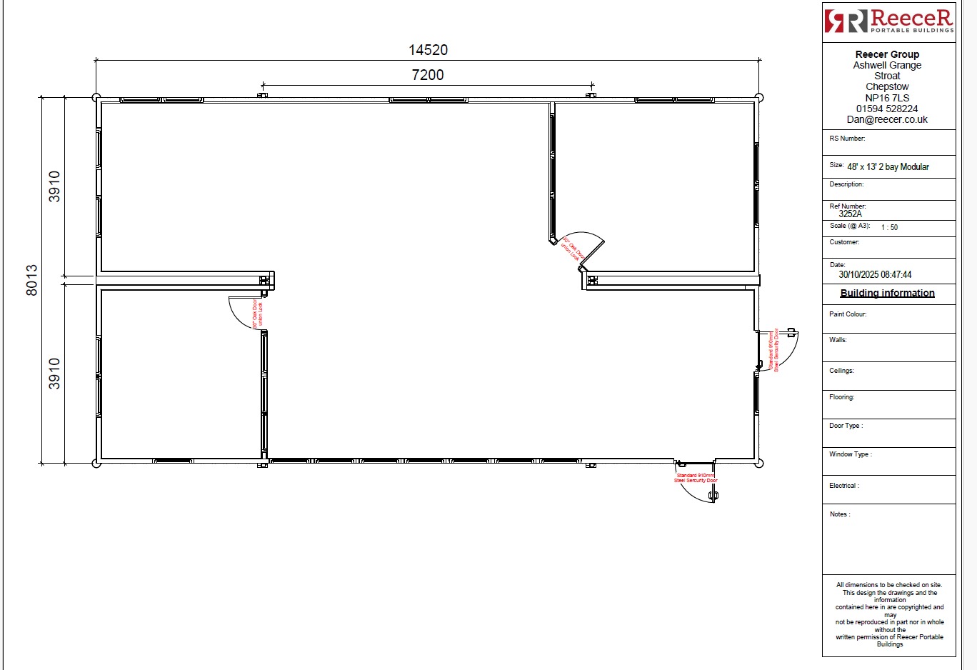 The Modular Unit consists of two single bays joined together, each split in half for ease of transport. The first bay features an office with ample natural light and a fitted air conditioning unit, opposite which is an open space that also benefits from large windows, an air conditioning unit, and multiple electrical sockets. The second bay includes an additional office located in the corner, equipped with air conditioning and generous natural lighting, while the opposite side offers an open area with numerous windows that enhance both the brightness and overall appearance of the modular unit.