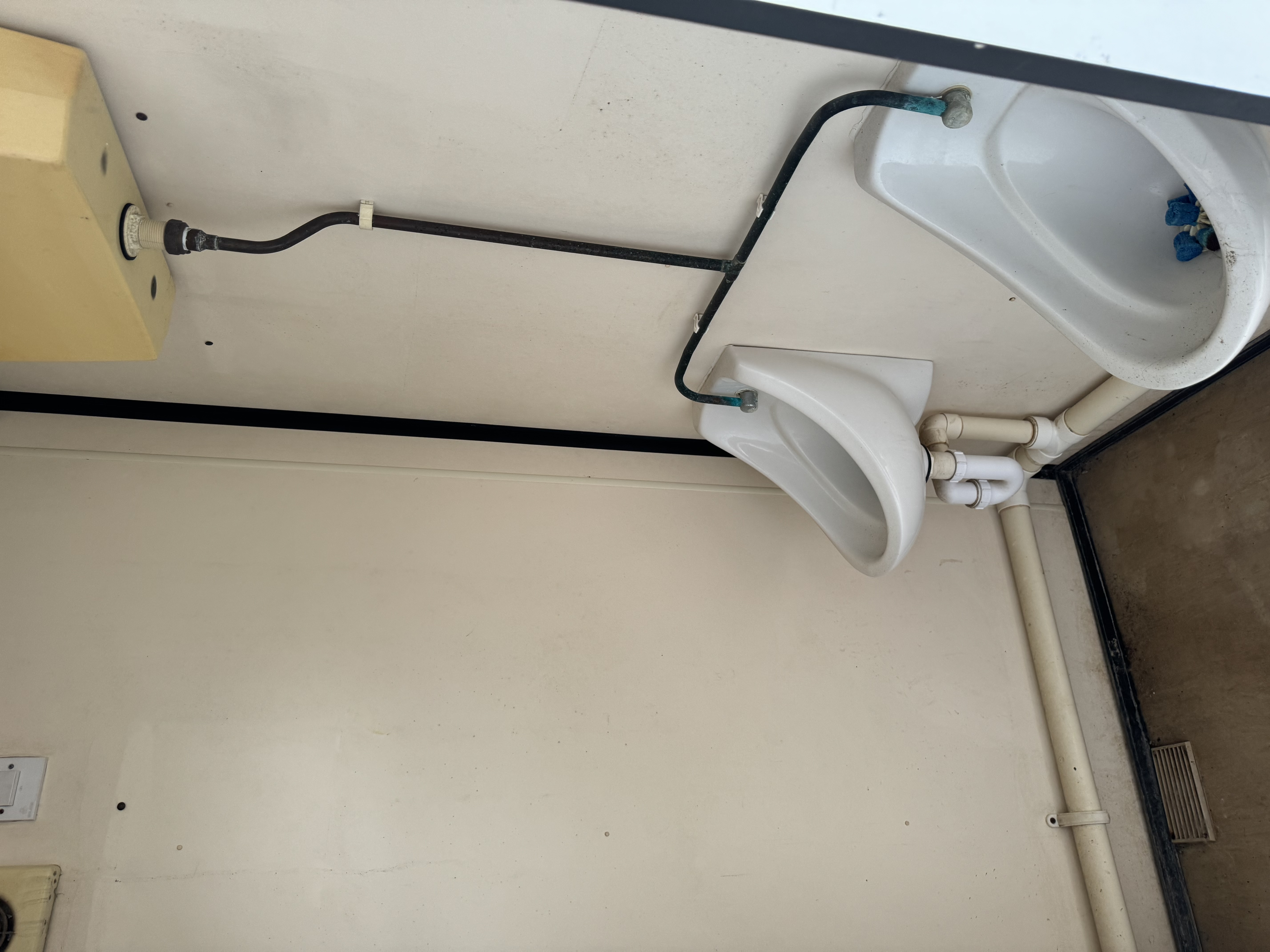 The Unit Is Made Up Of Two Sections. The Larger Section Includes Two Toilets With Cubicles, Two Hand Wash Basins And Two Urinals. The Other Section Is Provided With An Individual Toilet With Hand Wash Basin