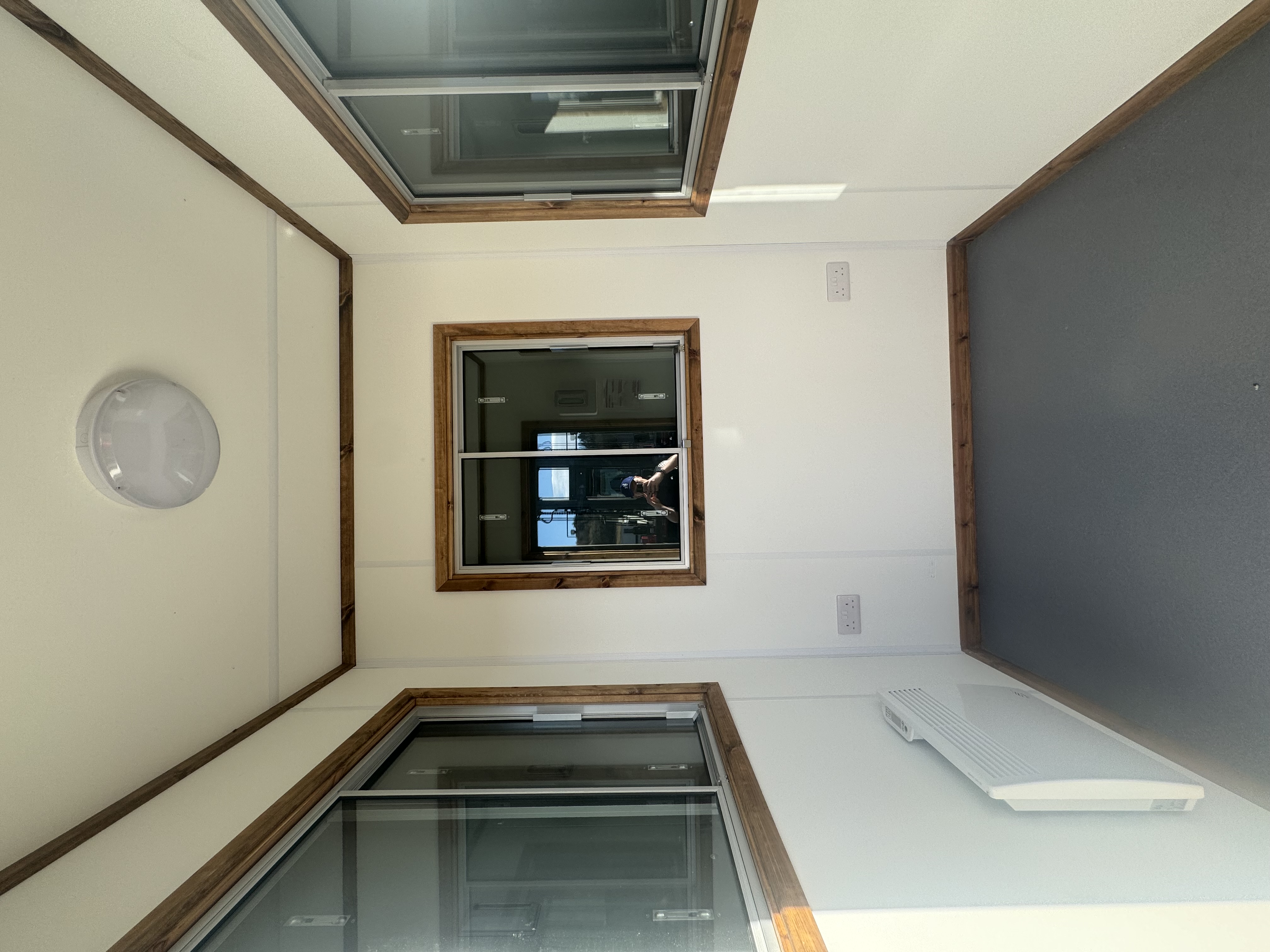 This unit includes a panel heater, serval sockets, LED light and the floor is non-slip vinyl
