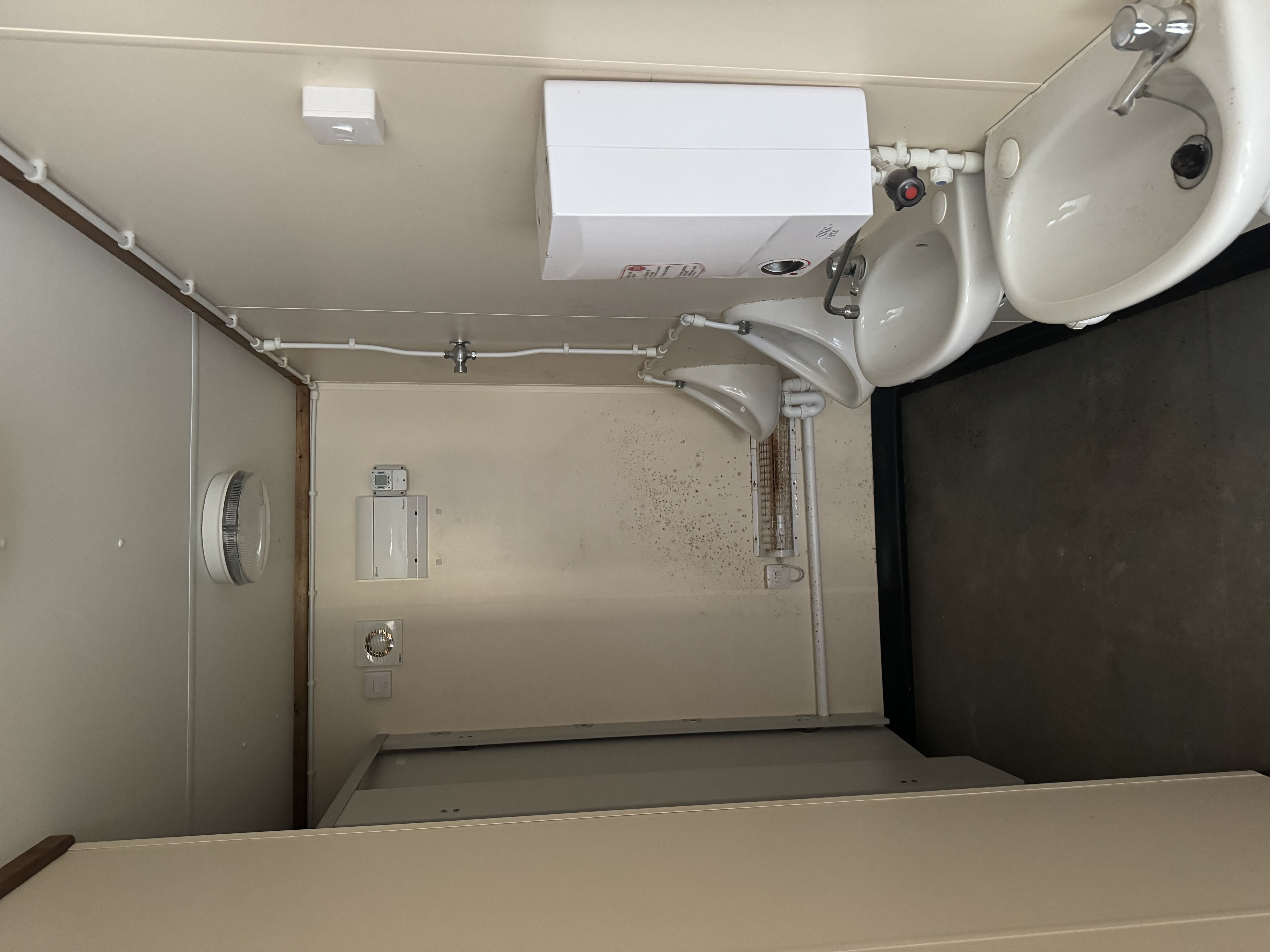 The female W/C is fully enclosed, while the male W/C is fitted with 2 urinals, 2 cubicles, and 2 hand basins—providing practical amenities for onsite teams.