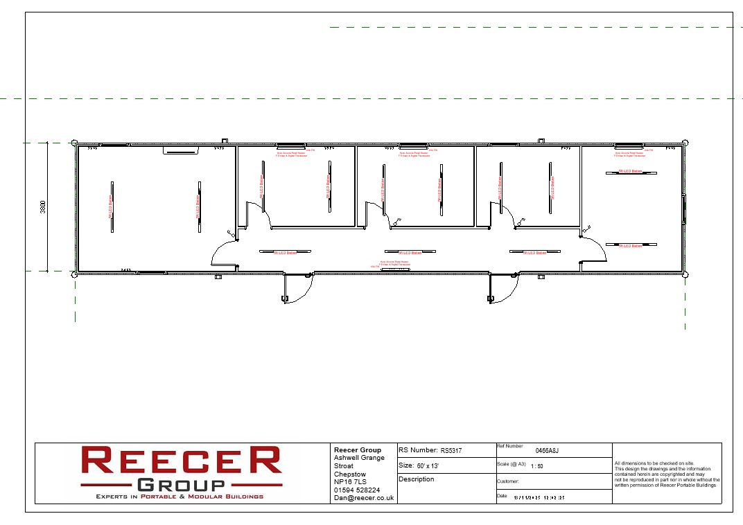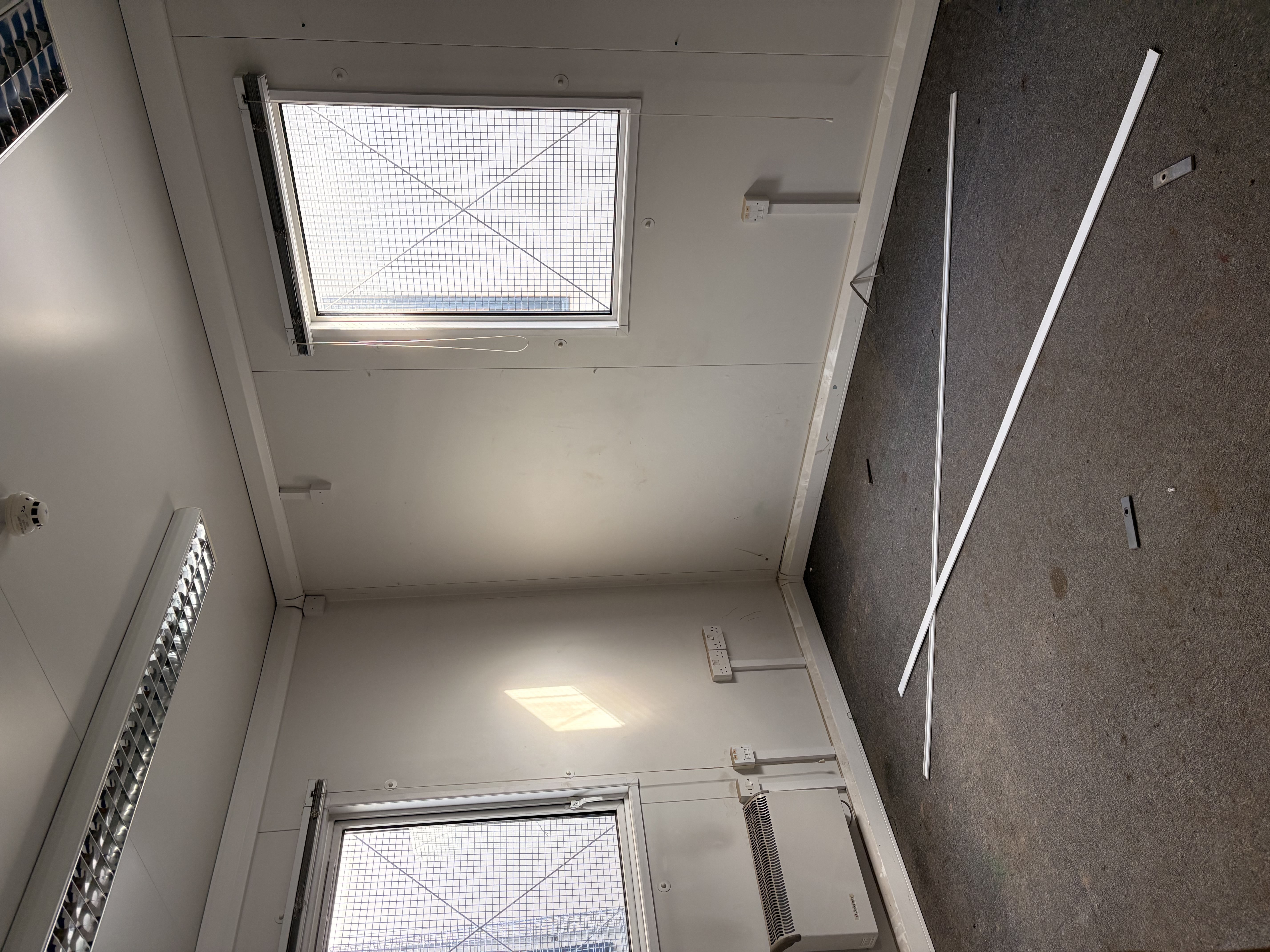 The Titan Unit is a large, single modular section engineered to provide both functionality and comfort. The internal layout is divided into five separate rooms, with three centrally positioned rooms and two larger rooms located at each end of the unit. Each room is fully equipped with air conditioning units and radiators to ensure year-round climate control. Large windows throughout the unit allow for ample natural light, creating a bright and comfortable environment. A central hallway provides easy access to all rooms, ensuring efficient movement and a well-organized layout.