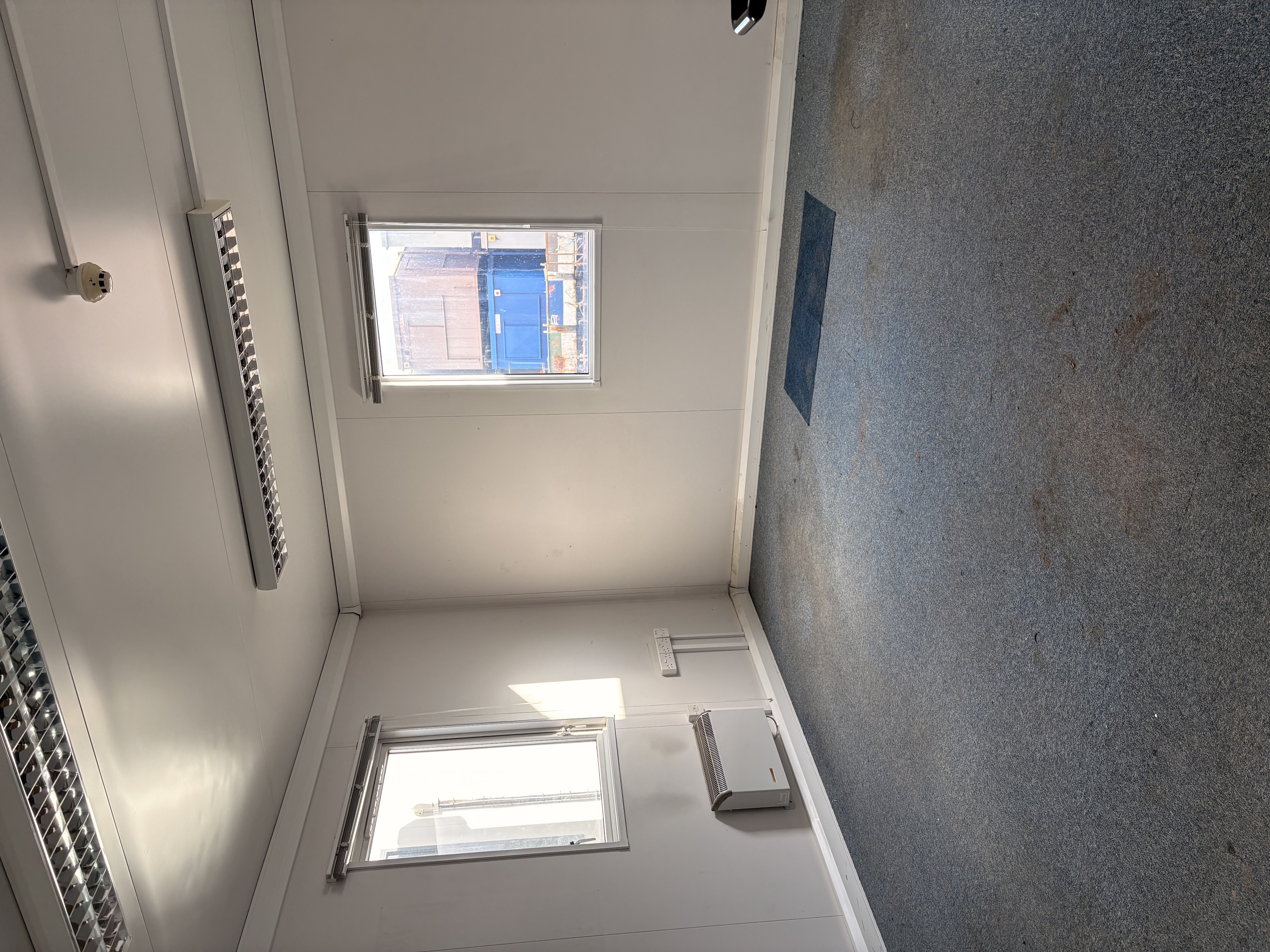 The Titan Unit is a large, single modular section engineered to provide both functionality and comfort. The unit is divided into two smaller rooms with a central hallway providing access to all areas. The final room is a spacious open area fitted with multiple electrical sockets, air conditioning units, and large windows that allow for plenty of natural light. This well-designed layout ensures a practical and comfortable environment suitable for a wide range of uses, including offices, accommodation, or site facilities.