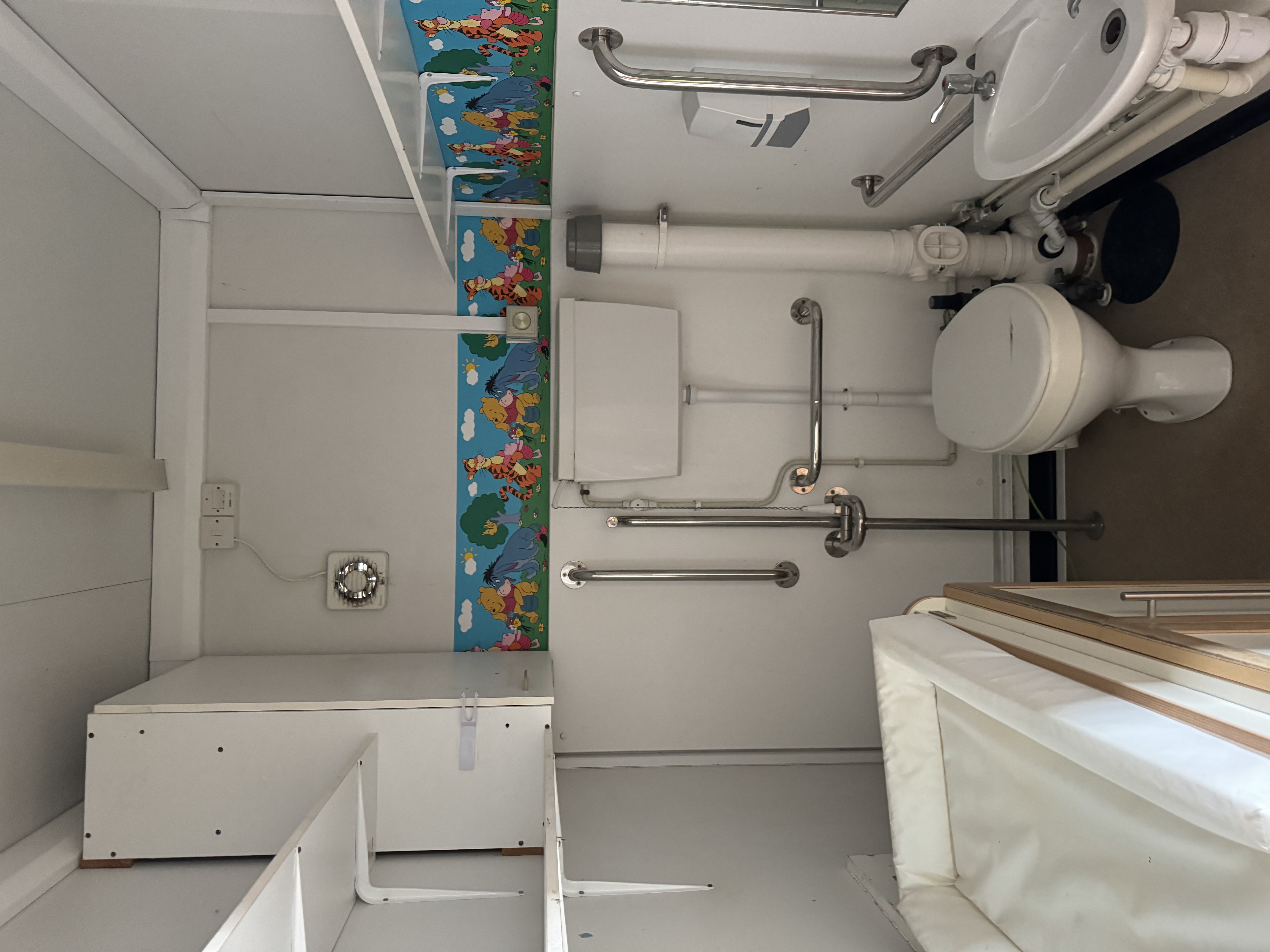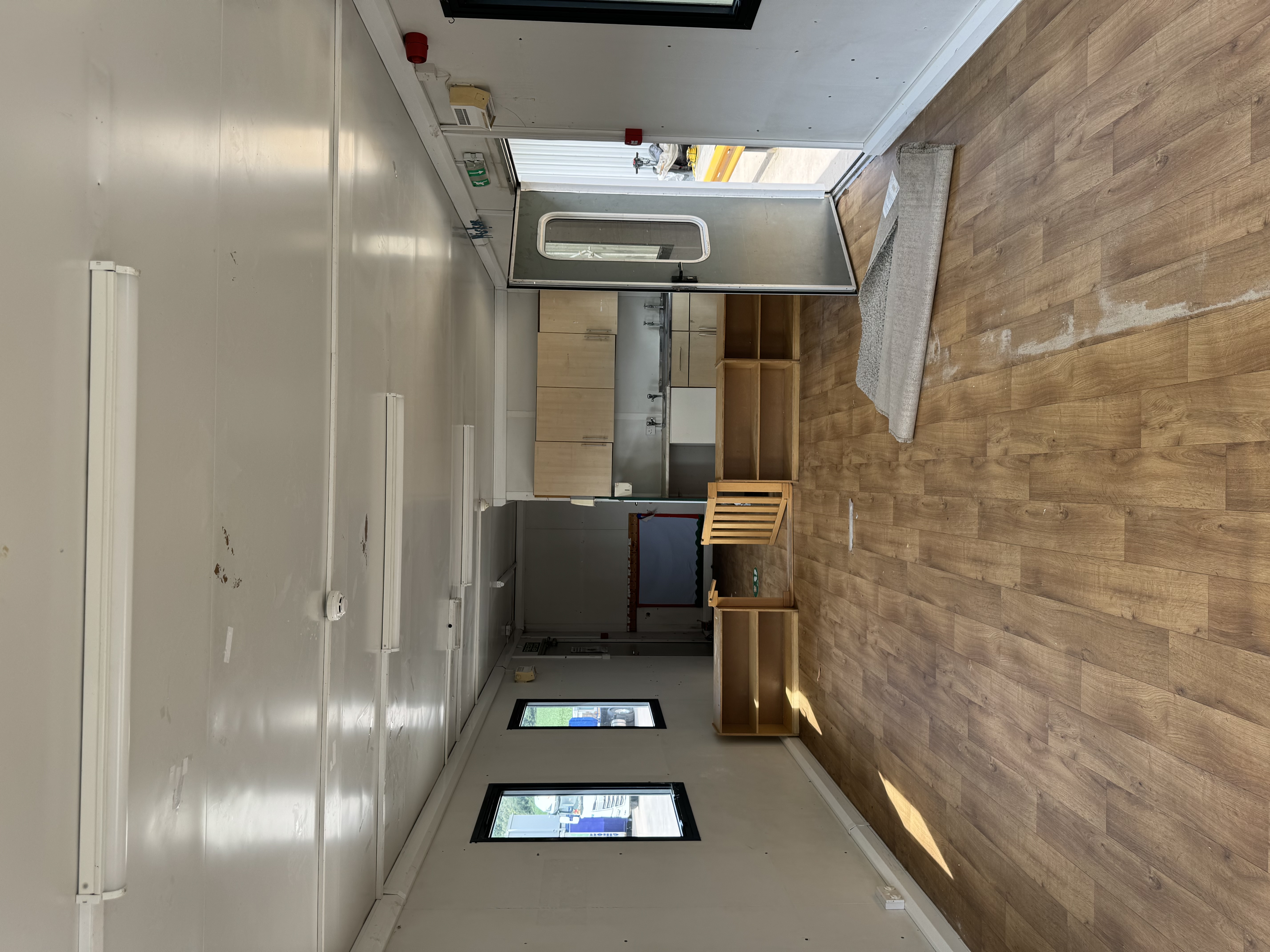 The Titan Unit is a single large modular section designed to provide both functionality and comfort. One end of the unit accommodates a fully equipped kitchen area, while the opposite end features two separate toilet facilities — one of which is a disabled-access toilet.