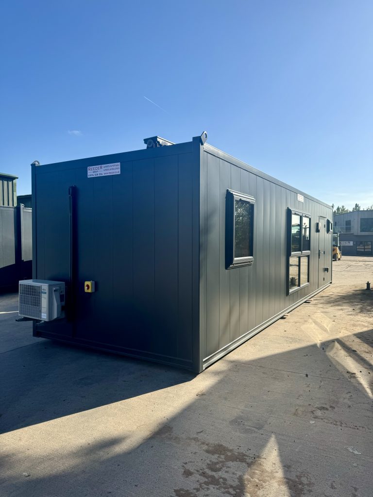 We are pleased to showcase one of our latest completed projects — a brand-new 32ft x 10ft modular unit, recently dispatched from our yard. Finished in a contemporary Anthracite Grey with matching windows, this unit combines a clean, modern aesthetic with practical, high-quality functionality.
