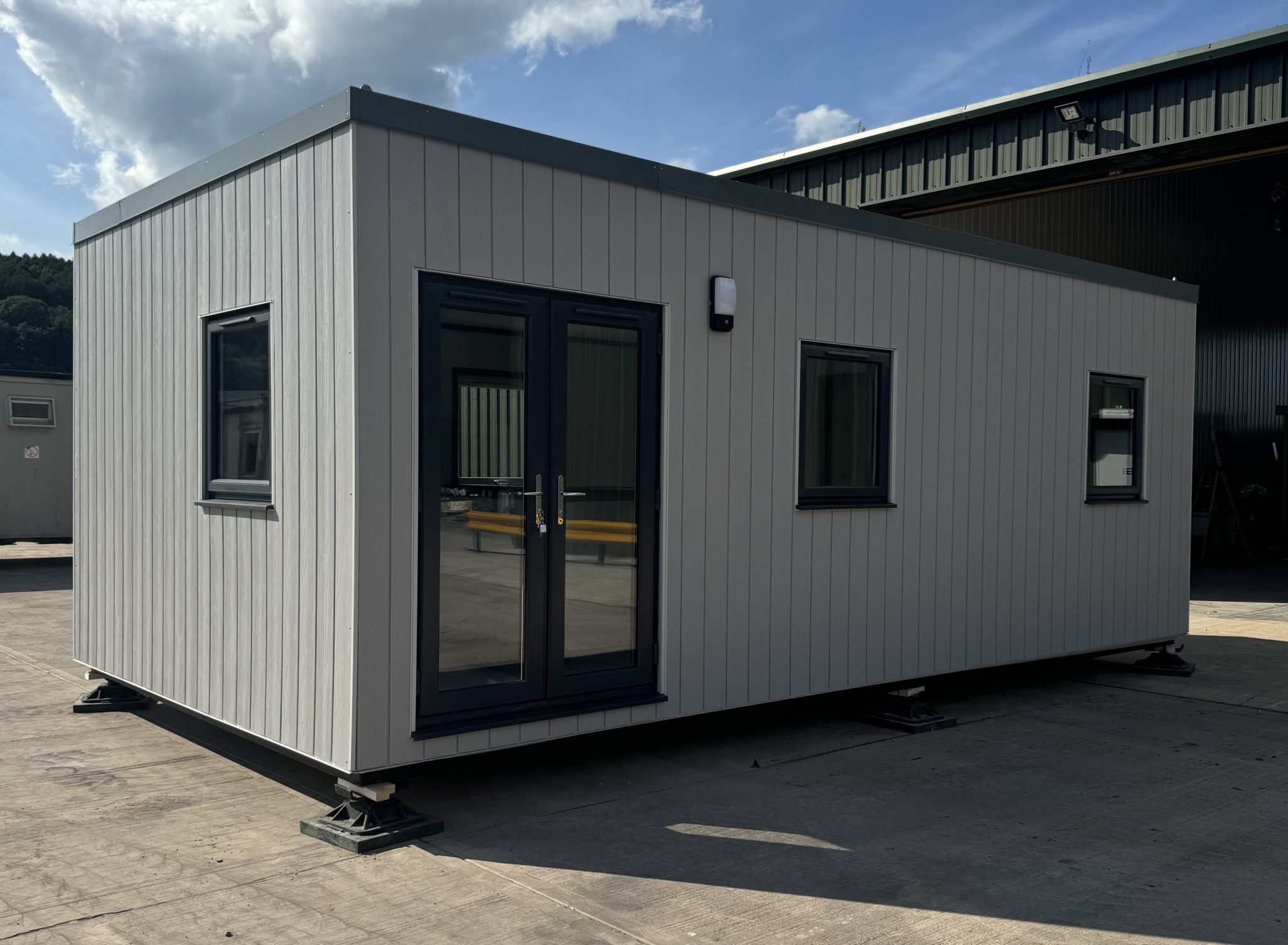 Externally, the unit features anthracite grey uPVC French doors and windows, paired with Cedral Click cladding in Platinum Grey for a modern, professional finish.